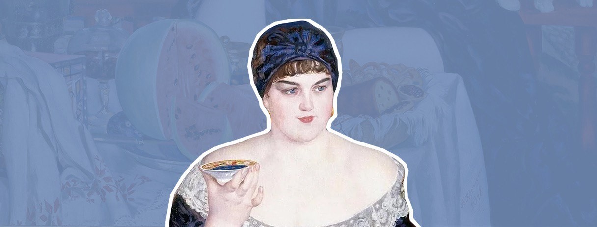 Борис Кустодиев – Купчиха за чаем, 1918. Русский музей. Источник