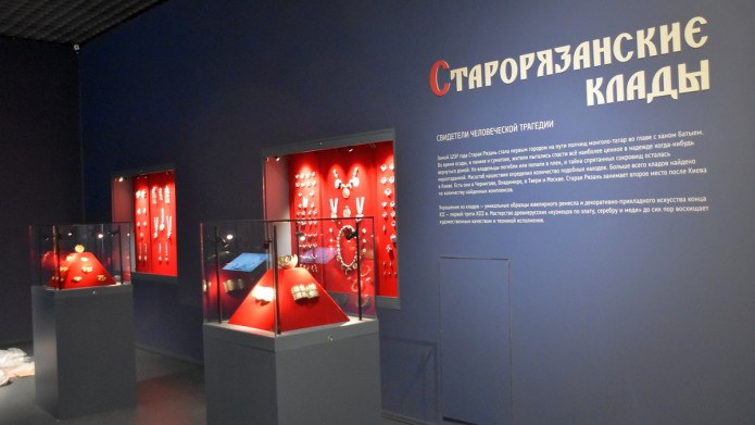 Раздел «Две столицы Рязанского княжества» можно считать жемчужиной выставки. Именно он открывает перед посетителями мир старорязанских кладов XII-XIII веков, знакомит с древнерусской живописью, лицевым шитьём и мелкой пластикой. Кроме того, экспозиция рассказывает об истории двух столиц Рязанского княжества — Старой Рязани и Переяславле-Рязанском.