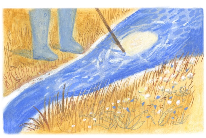 Просто живя свой обычный день можно найти необычный образ, например, поговорив с ребёнком. Моя дочка подсказала мне идею: нужно было не напрямую интерпретировать текст, а вложить свой образ. Я спросила её: «На что похожа буря в стакане, когда перемешиваешь яйцо?» Вышел вот такой образ с весенней прогулки — солнце в луже.
