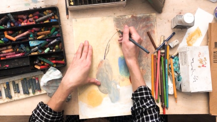 Люблю все оттенки серого, индиго, охра, тёплый красный — эти цвета быстрее всего заканчиваются. Если передо мной очень яркая натура, я стараюсь её приглушить, чтобы лучше звучали акценты. В первую очередь выделяю один главный цвет — чем пронизан воздух, какого он цвета. Как правило, этот цвет является цветом моей подложки, на которую я рисую, он пронизывает все остальные цвета.